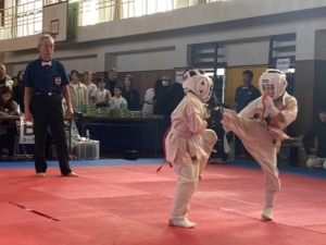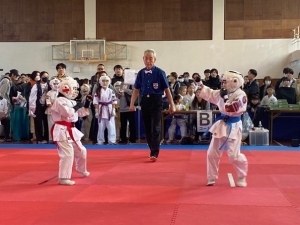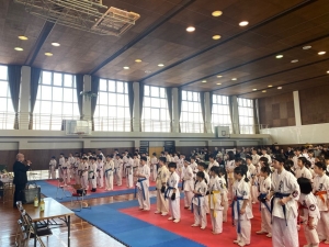 令和8年3月15日(日)、鳴門勤労者体育センターにおいて、「第17回 極真四国サムライ杯春の陣 空手道選手権大会」が開催されました。今年は約150名の選手が集まり、熱気あふれる試合が繰り広げられていました。